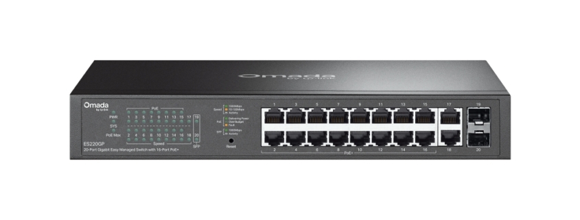 Omada 20-Port Gigabit Easy Managed Switch with 16-Port PoE+ – ES220GMP