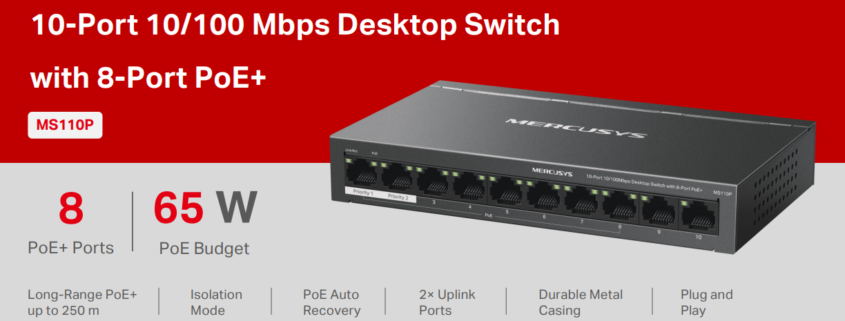 Mercusys 8-Port PoE+ 10/100 Mbps + 2 Gigabit Port Switch – MS110CMP