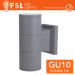 Supporto da parete per due lampade led con attacco GU10. Emissione luce bidirezionale (verso l''alto e verso il basso).