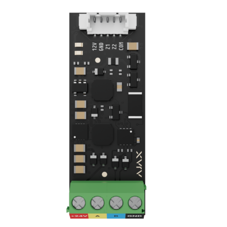 Il modulo di integrazione supporta i tipi di connessione dei dispositivi NC, NO, EOL, 2EOL, 3EOL o Contatto tapparella e può alimentare il dispositivo collegato con 10,5–15V?, fino a 50 mA di potenza.