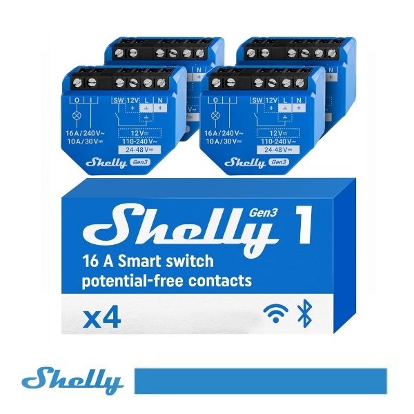 Shelly 1 Gen3 – 4 PACK – Nuovo Modello 3° Generazione – Processore più potente e connettori più resistenti