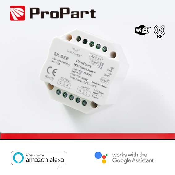 - Funzione convertitore da segnale WiFi a segnale RF per controllare da APP Tuya, in modo sincrono, altri switch RF o dimmer Propart